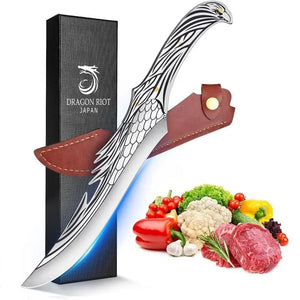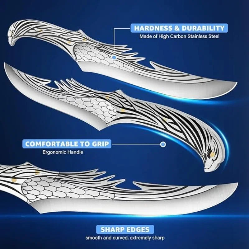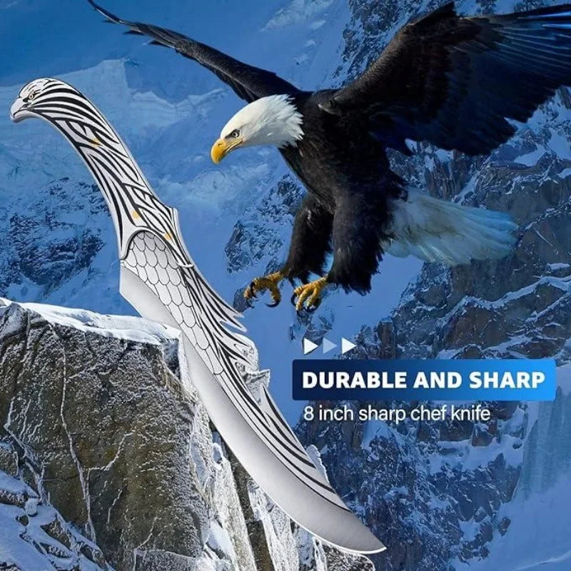 Personalized Design: The standout feature of this chef knife lies in its unique design, vividly depicting an eagle on the blade. The eagle, symbolizing bravery, boasts sharp claws akin to this chef's knife. Ergonomically designed for enhanced comfort, the handle seamlessly connects to the blade through the eagle's body