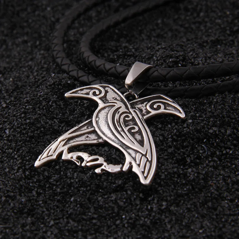 S925 sterling silver Norse Double Raven necklace with cow leather chain and keel chain and wood box as gift