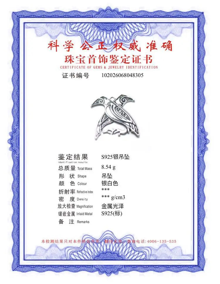 Name:S925 sterling silver Norse Double Raven necklace with cow leather chain and keel chain and wood box as gift