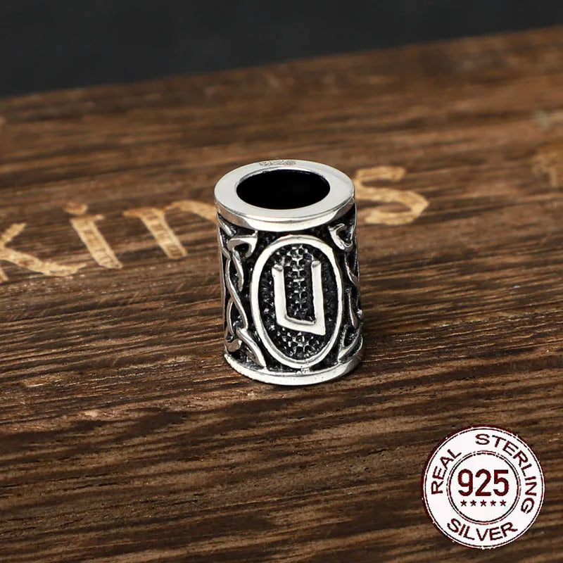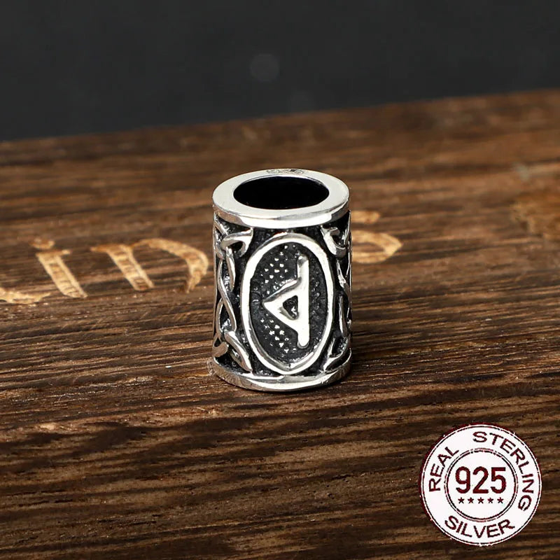 S925 Sterling Silver Viking beard Beads Hair Beads with keel chain and cow leather chain and vintage wood box as gift