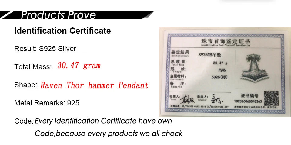 Name:S925 sterling silver Viking raven thor's hammer necklace with keel necklace and real cow leather and wood box as gift