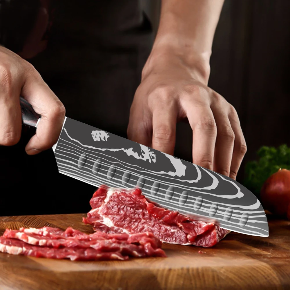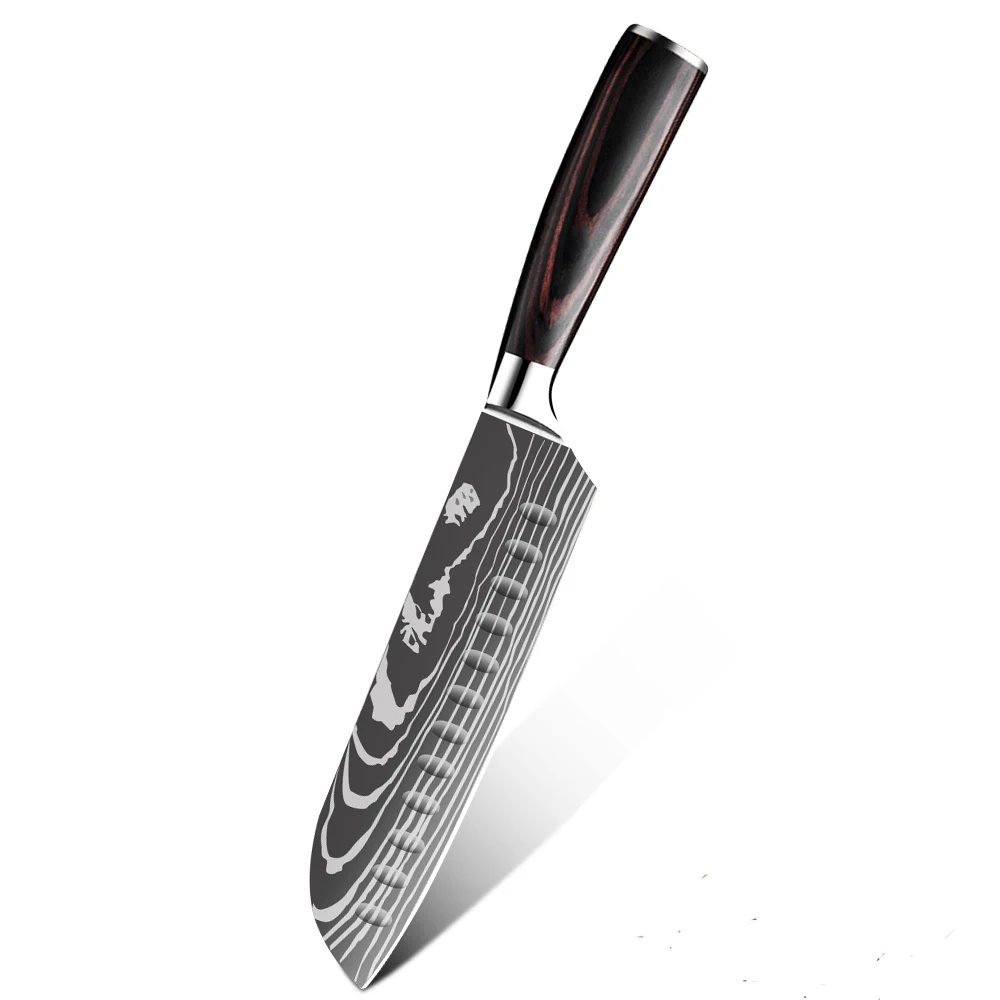 Sharp Kitchen Knife Wooden Handle Stainless Steel Meat Cleaver Kitchen Paring Knives Laser Damascus Pattern Chef Knife