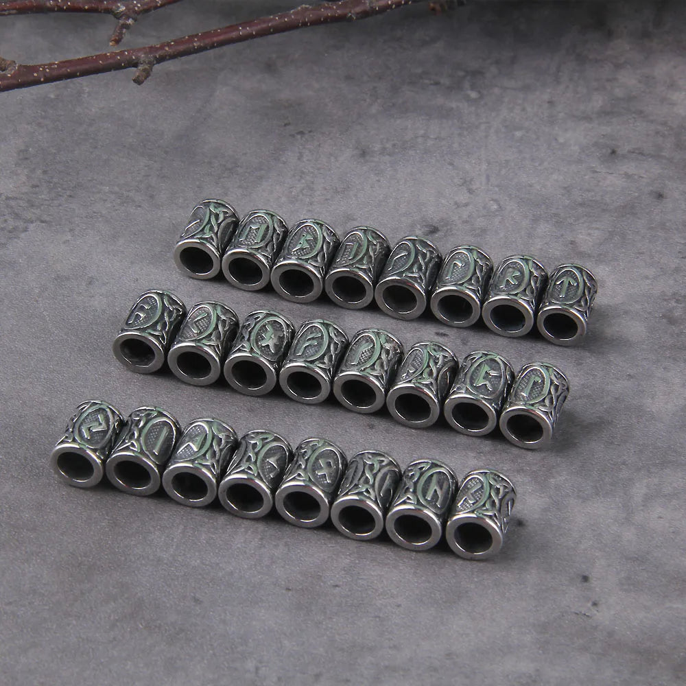Stainless Steel 24pcs/lot Viking Runes Beads Charms TIWAZ TYR Sol rune Odal Futhark Rune beads for Hair Beard with wooden box