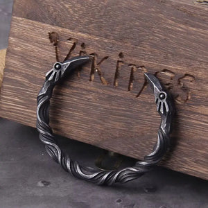 Name:Stainless Steel Iron Color Nordic Viking Norse Raven Bracelet Men Wristband Cuff Bracelets with viking wooden box