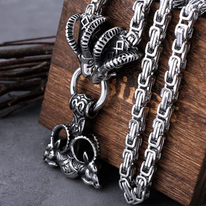 Stainless Steel Viking Thor Hammer Pendant Ram Rune Necklace Nordic