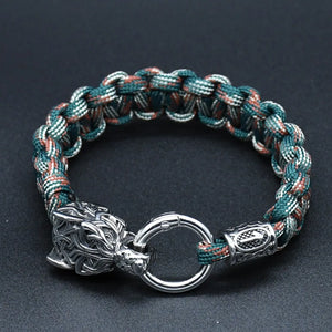 Stainless Steel Wolf Heads Bracelets Norse Vikings Runic Beads Paracord