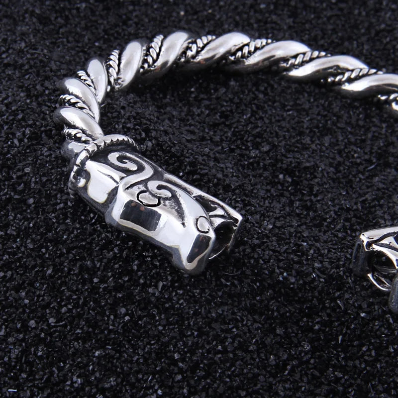 Sterling Silver Big Viking Dragon Bangle with wood box as gift for men or women