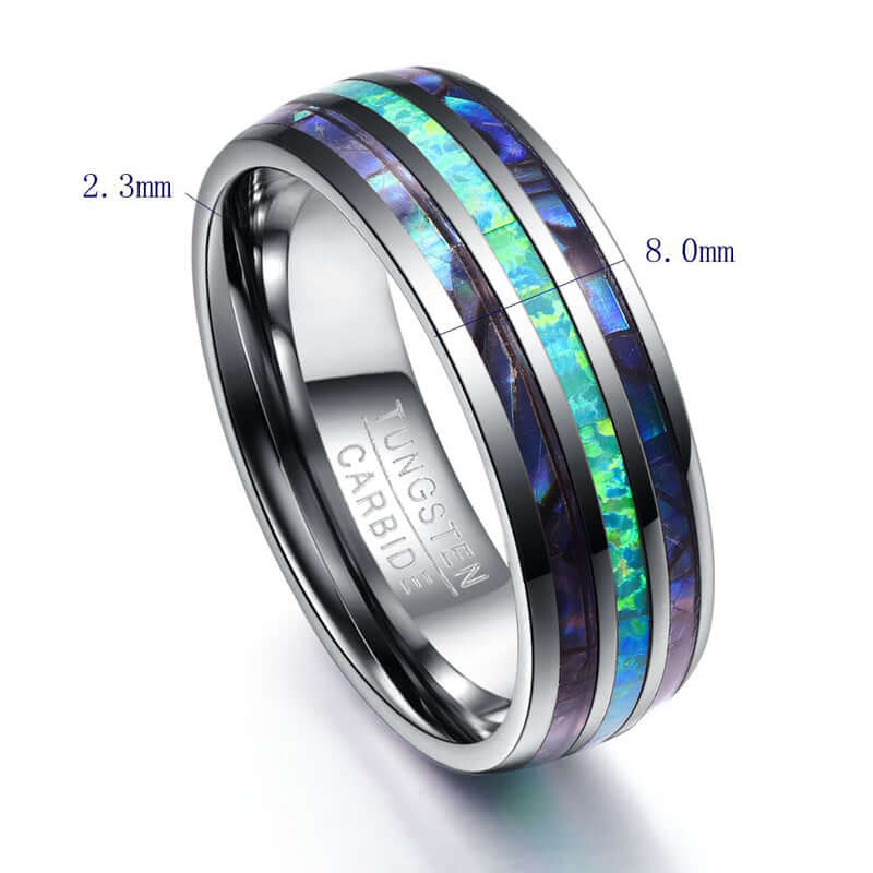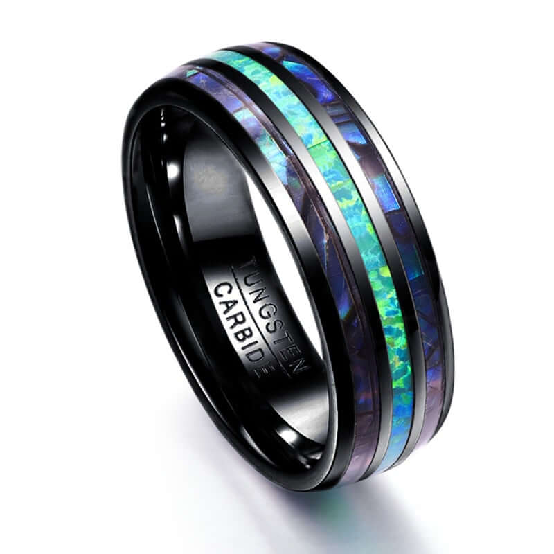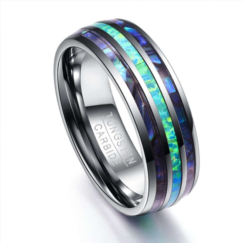 Get Noticed with Our Stylish Tungsten Bifrost Abalone Ring!