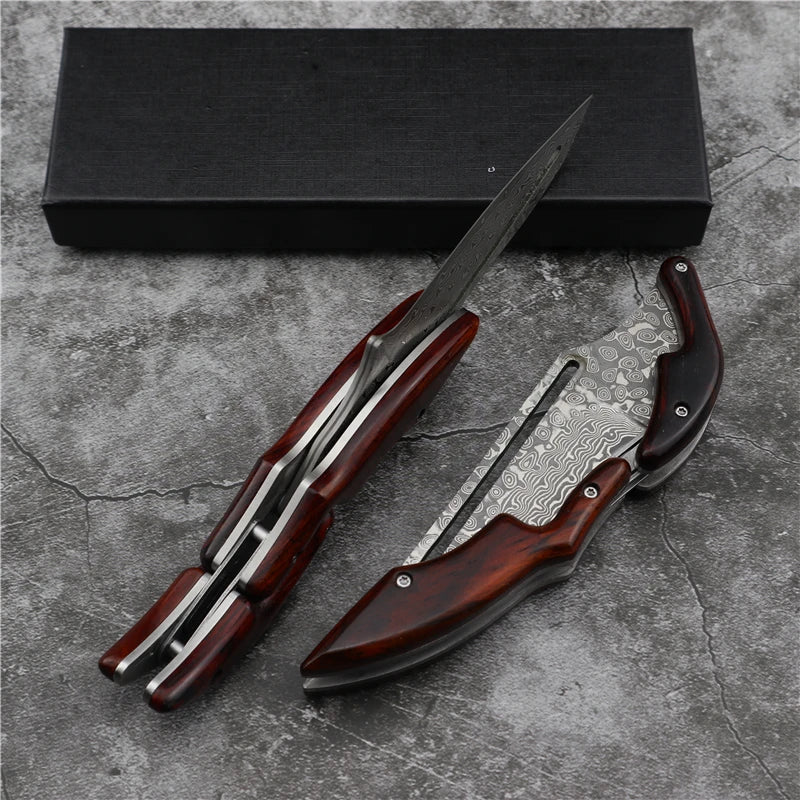 Knife closing: Press the triangular end of the hilt again, and pull with your hand to retract the blade.
