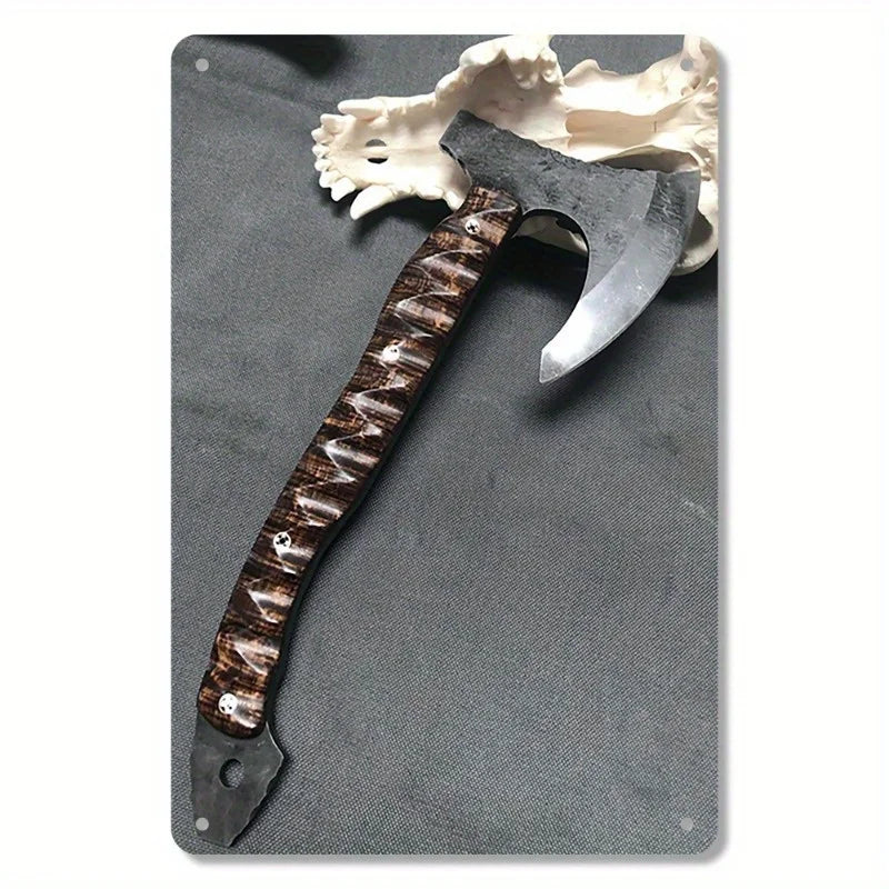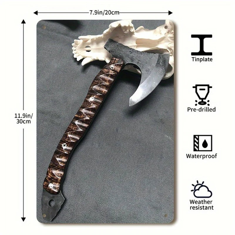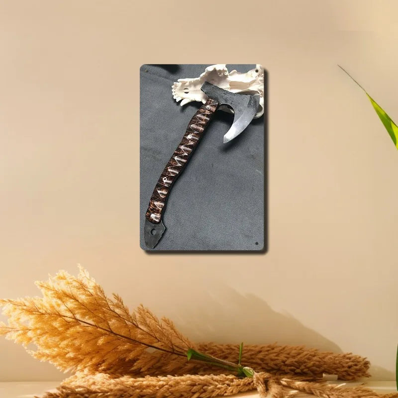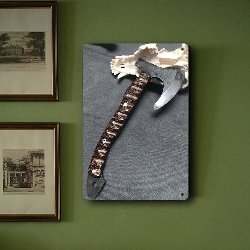 Viking Hawk Axe Metal Wall Art - 7.87" x 11.81" Iron Sign with Koa Wood & Brass Grip | Nautical Home Decor, Easy-to-Hang