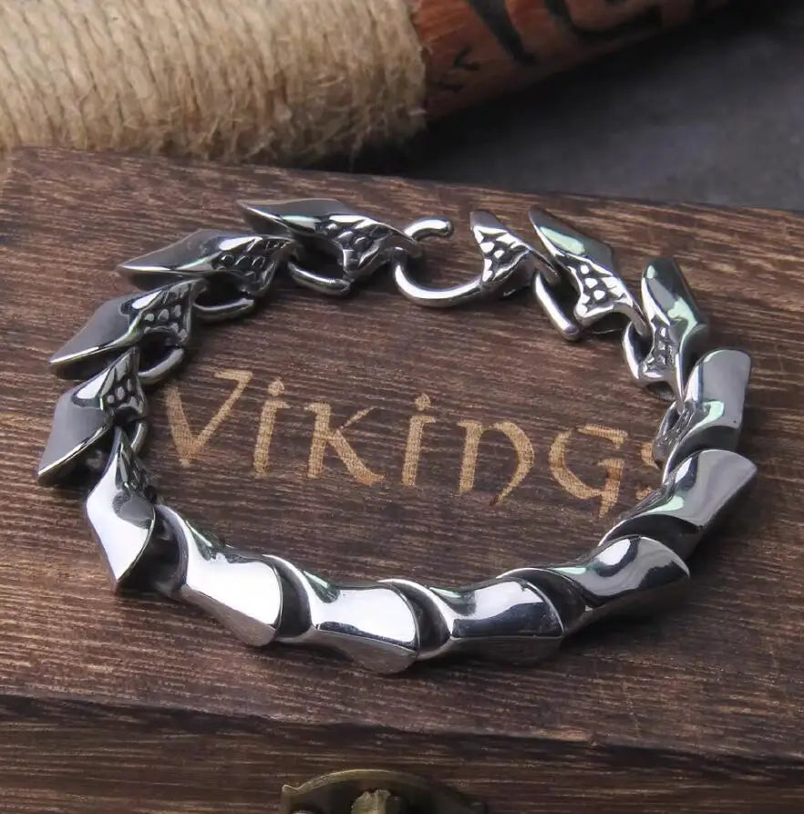 Viking Ouroboros vintage punk bracelet for men stainless steel fashion Jewelry hippop street culture