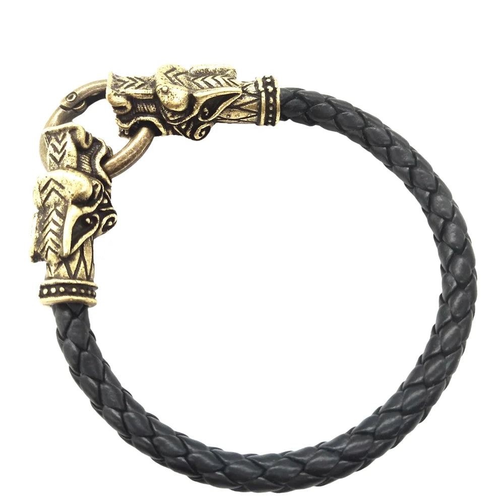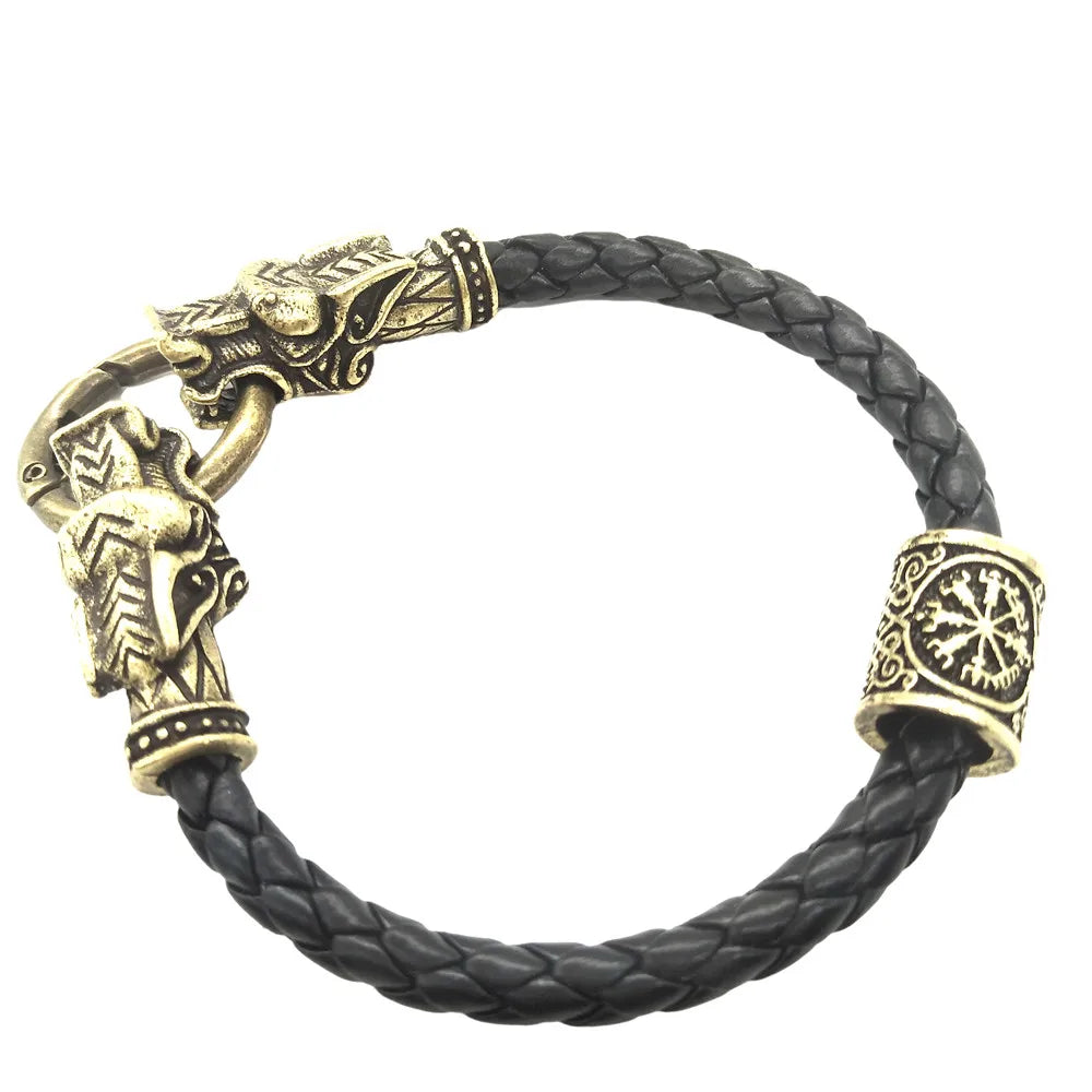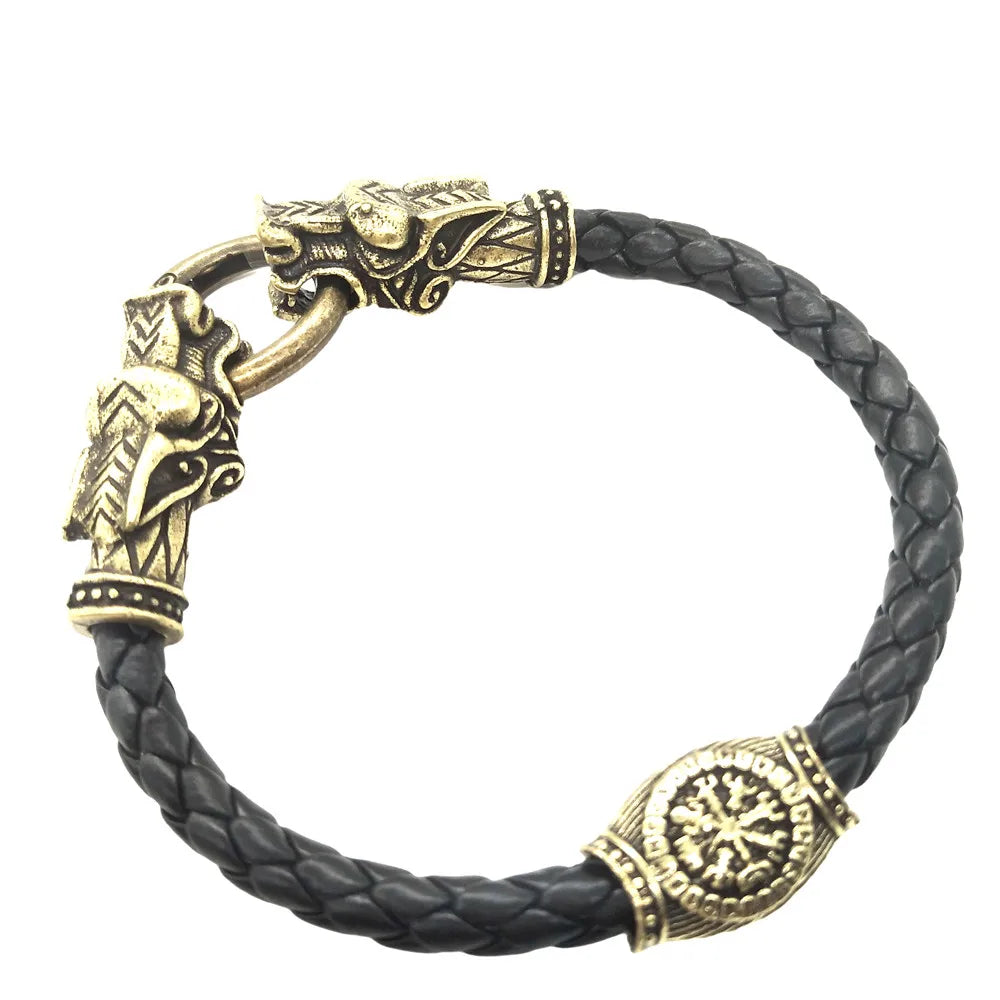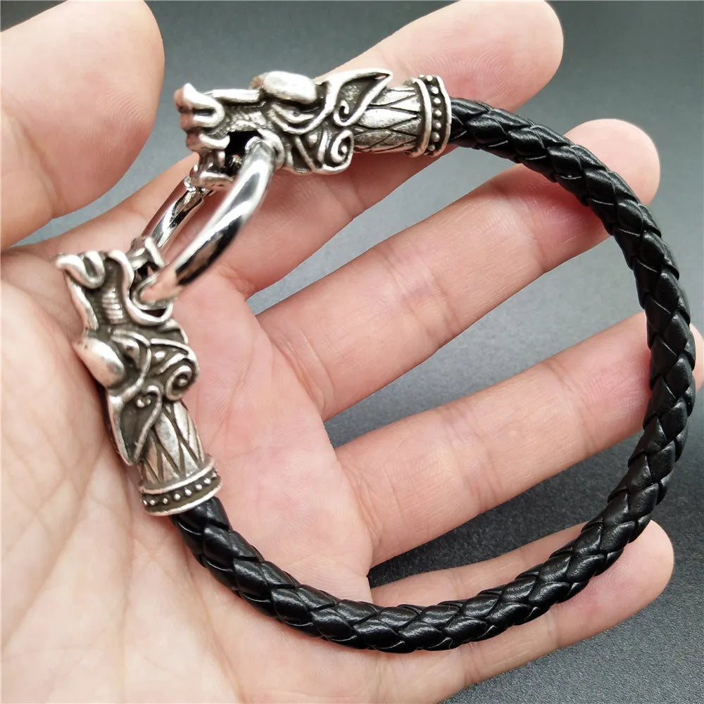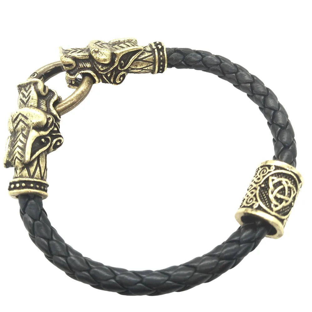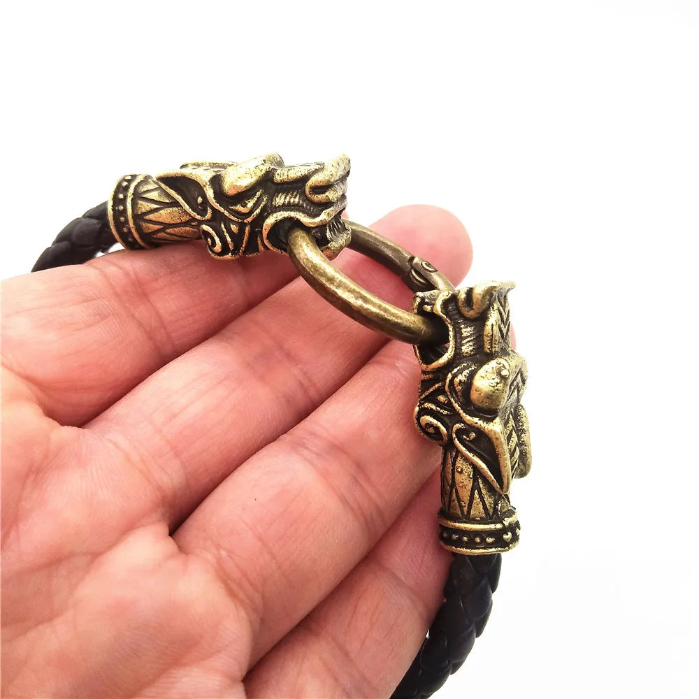 Vikingos Runes Beads Diy Charm Wolf Head Viking Jewelry Bracelet Leather Mens Bracelete Accessories