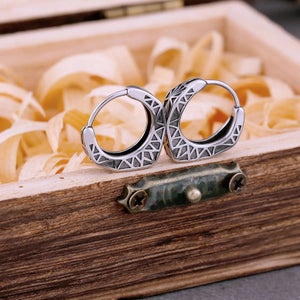 Vikings Celtic Rune Hoop Earrings Nordic Stainless Steel
